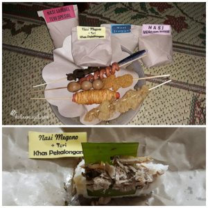 Makanan di warung-warung ini sepertinya sama semua. Untuk pilihan lauknya, semua warung menyediakan aneka macam gorengan dan sate yang dapat dipilih sesuai selera, seperti sate telur puyuh, sosis, nugget, ceker ayam, sosis gulung mie, bakwan dan lain-lain.