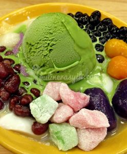 Saya mencicipi sedikit dessert no 5 pesanan suami ini. Kuahnya rasa susu. Isian dessert ini yang menjadi favorit saya adalah egg pudding yang lembut, fruity mochi yang kenyal dan bomb ball berwarna orange yang rasanya seperti kabocha. Komentar suami sih, makanan yang dia pesan ini berasa seperti kolak dingin hahaha 😂