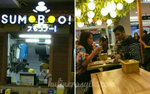 Sesuai dengan namanya Sumoboo yang mengingatkan kita akan olahraga sumo dari Jepang, restoran ini menyajikan menu-menu dessert dan snack yang berbau Jepang. Untuk dessertnya ada kakigori yang merupakan es serut dari Jepang, sementara makanan beratnya ada ramen dan untuk snack ada japadog yaitu sejenis hotdog dengan kreasi ala-ala Jepang.